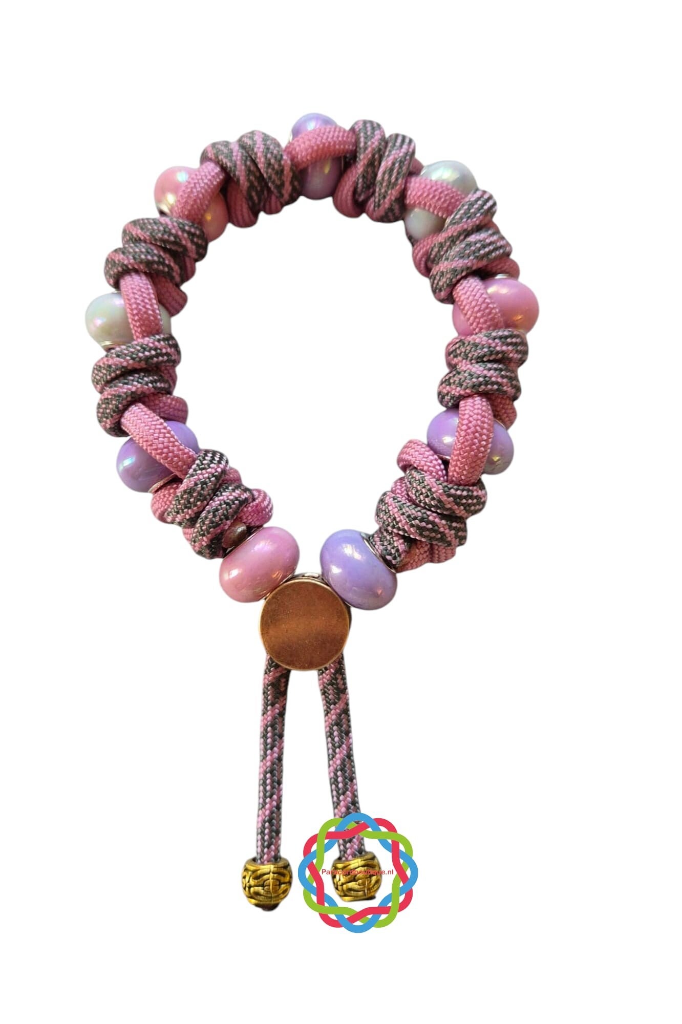 Paracord armband roze/lila met parelmoer kralen