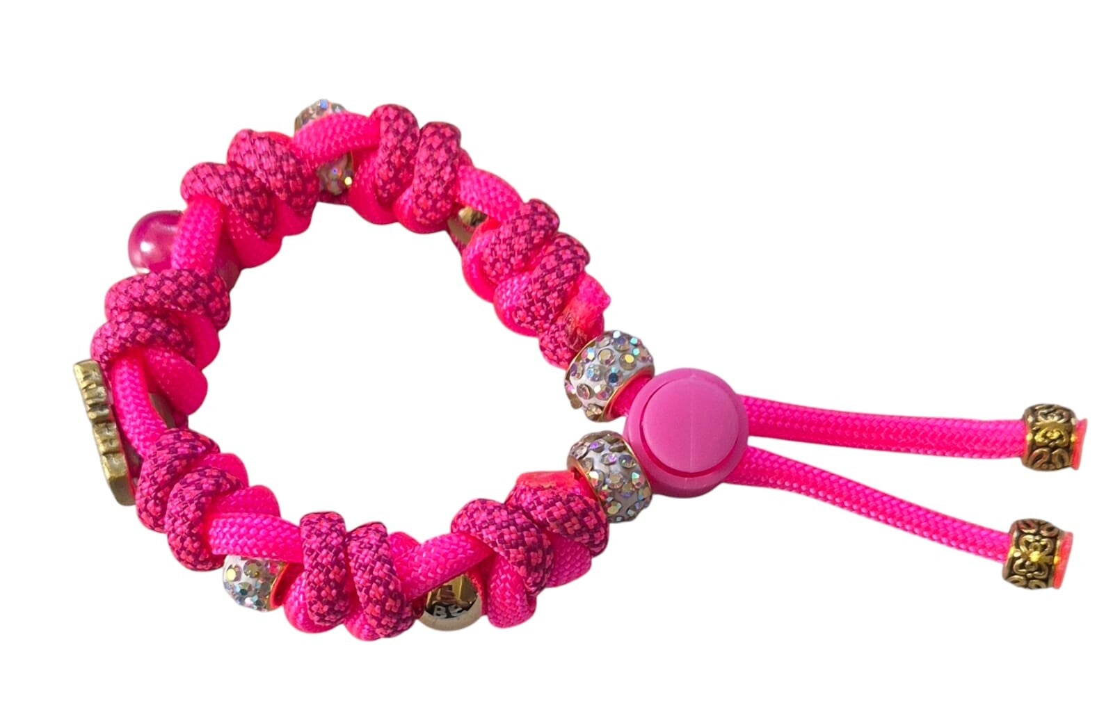 Neon Roze koord gemixt met bling bling en gouden kralen met ras naar keuze